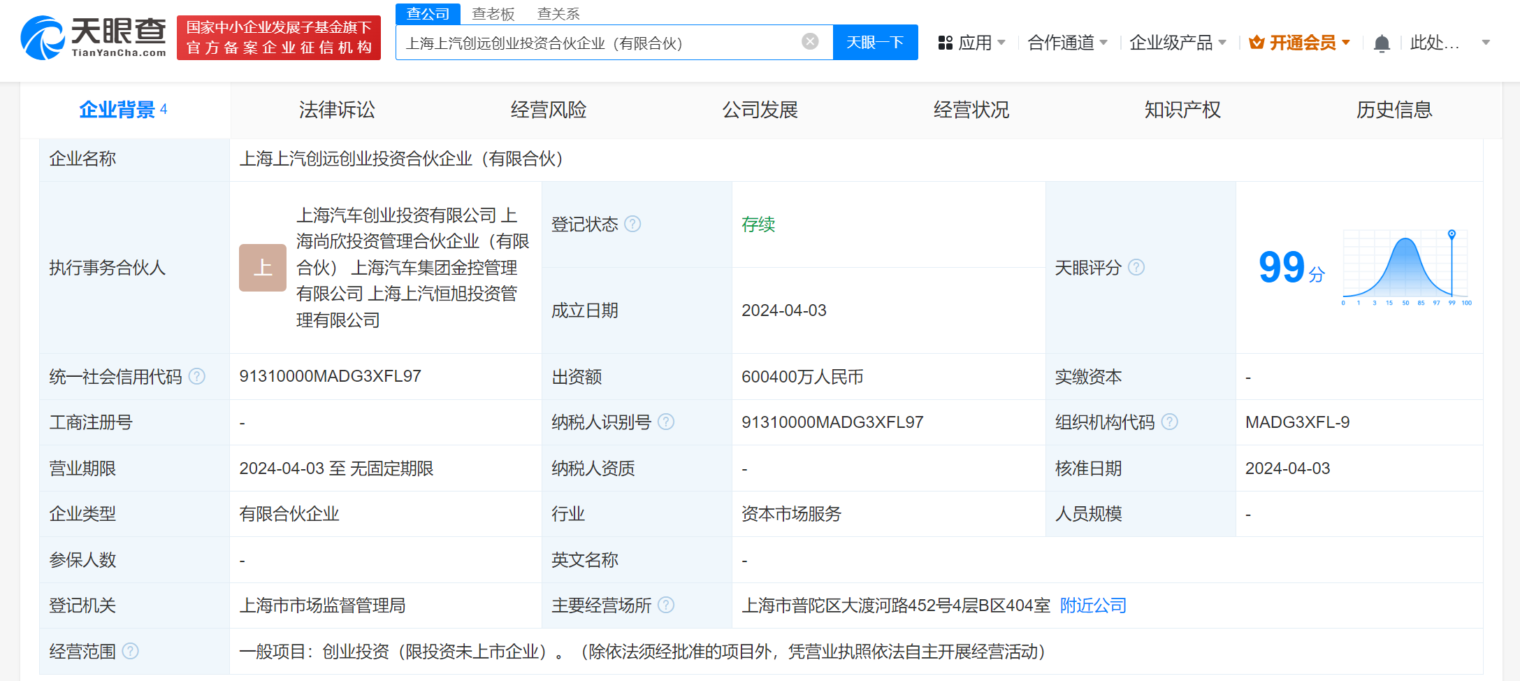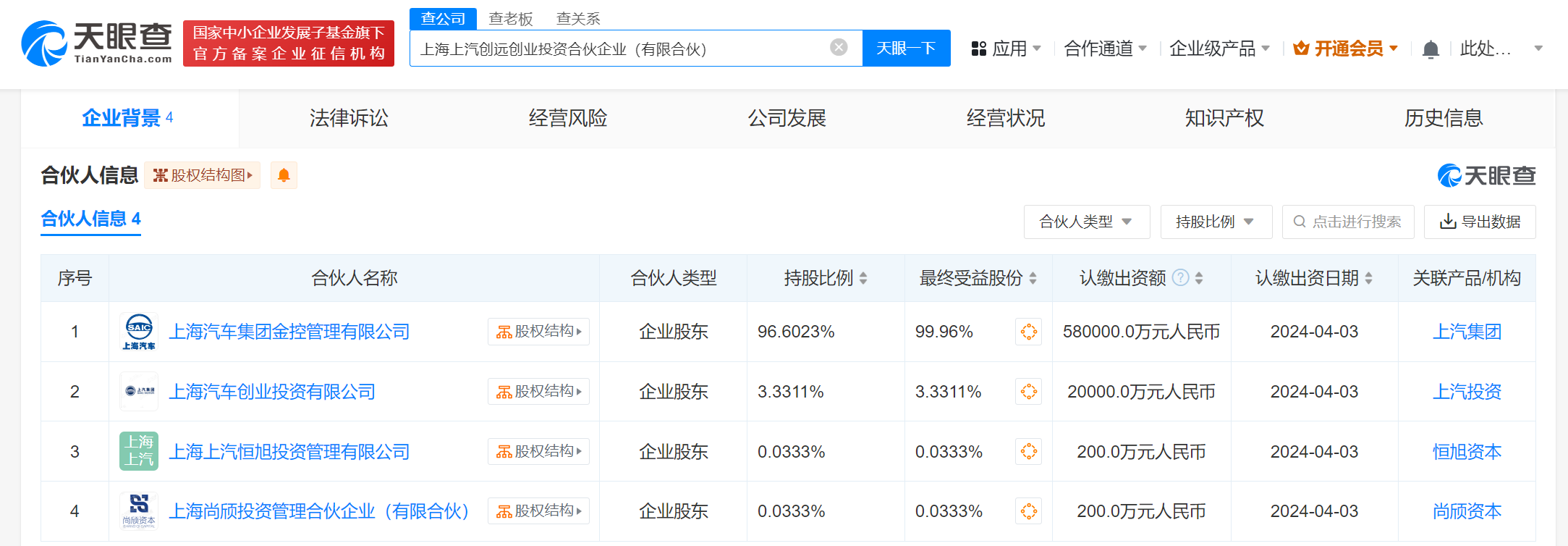 天眼查App显示,近日,上海上汽创远创业投资合伙企业(有限合伙)成立,出资额60.04亿人民币,经营范围为创业投资。合伙人信息显示,该企业由上汽集团旗下上海汽车集团金控管理有限公司、上海汽车创业投资有限公司、上海上汽恒旭投资管理有限公司、上海尚颀投资管理合伙企业(有限合伙)共同出资。