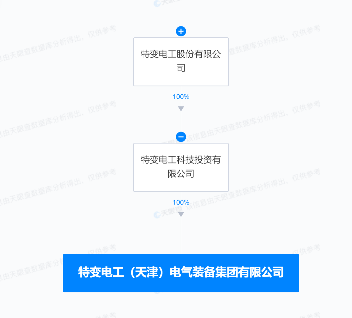 天眼查App显示,近日,特变电工(天津)电气装备集团有限公司成立,法定代表人为种衍民,注册资本2亿人民币,经营范围含变压器、整流器和电感器制造,充电桩销售,输配电及控制设备制造,输电、供电、受电电力设施的安装、维修和试验等。股权全景穿透图显示,该公司由特变电工旗下特变电工科技投资有限公司全资持股。