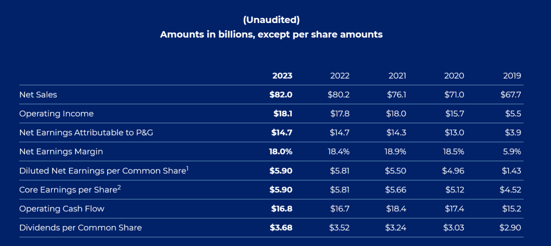 据蓝鲸财经,从自然年的统计维度来看,2023年宝洁年营收820亿美元(约合人民币5932亿元)。虽然这对宝洁具有历史性意义,但实际上,从2023年全年的业绩变动幅度来看,强如宝洁也未能躲开行业业绩降速、利润缩水大环境的影响。