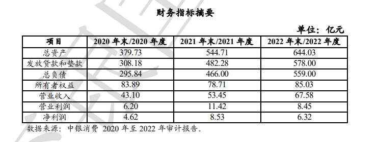 数据显示:2020至2022年,中银消费金融实现营业收入分别为43.1亿元、53.45亿元、67.58亿元,净利润分别为4.62亿元、8.53亿元和6.32亿元。