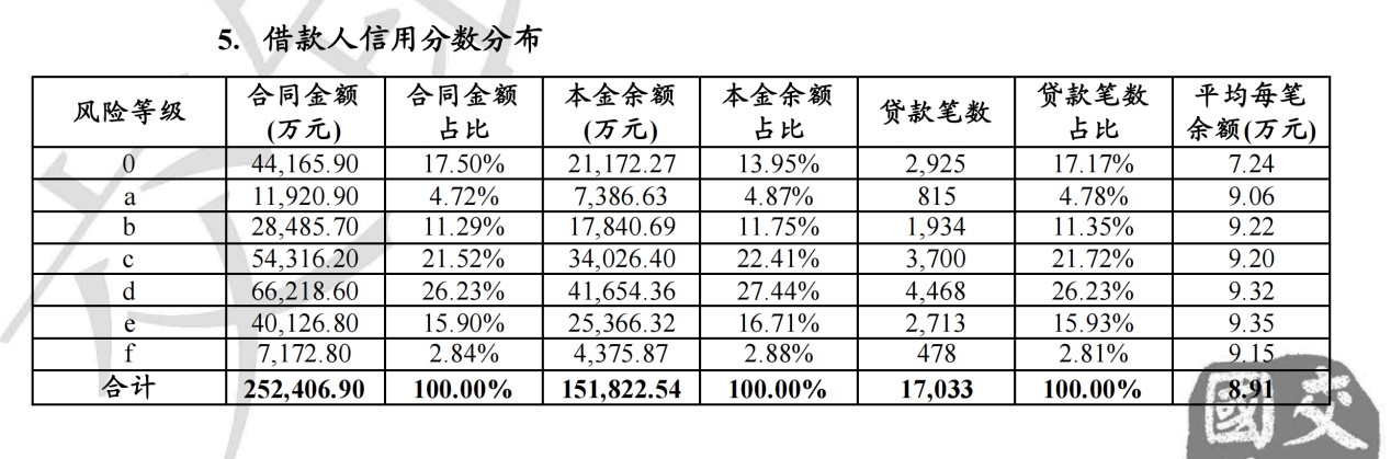 中债资信在评级报告中直言,就入池货款而言,为纯信用资产,加权平均账龄较长,加权平均利率很高,剩余期限较长,基础资产整体信用质量一般。据披露,根据中银消费金融内部评级来划分,大部分的借款人风险等级分布在c、d、e三个档,这类用户的本金余额合计占比为66.56%,中高风险用户占比较高。