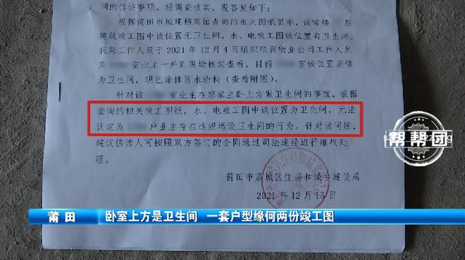 2021年,郑先生曾向莆田市荔城区住房和城乡建设局信访,当年该局已组织项目物业公司及楼上一户业主一并到场核实查看,确认该位置已装修为卫生间。但根据信访回复,由于水、电竣工图中该位置为卫生间,无法认定存在违规增设卫生间的行为。