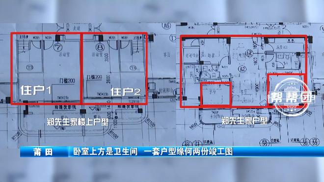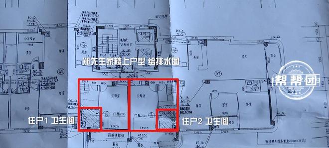 根据郑先生提供的图纸,他家户型与楼上户型有所区别。他所在的楼层共有三户,而楼上属于复式房型,每套面积更大,因此只有两户。郑先生楼上业主家卫生间的位置刚好在郑先生家主次卧的上方。