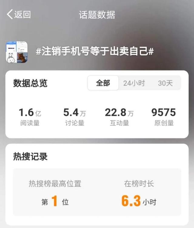 4月5日,话题“注销手机号等于出卖自己”冲上微博热搜榜第一,引发热议。