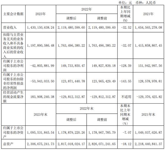 大地熊3月30日发布年报,2023年实现营业收入约14.3亿元,同比减少32.52%;归母净利润亏损约4281万元,同比止盈转亏,下滑128.59%,去年同期为1.50亿元;实现归母扣非净利润亏损5394.30万元,同比下降143.55%。