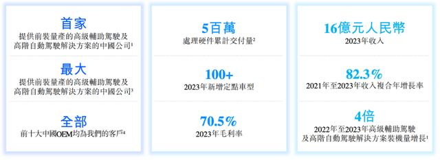 根据招股书信息,地平线自2021年大规模量产解决方案起,按年度装机量计算,是首家且每年均为最大的提供前装量产的高级辅助和高阶自动驾驶解决方案的中国公司。