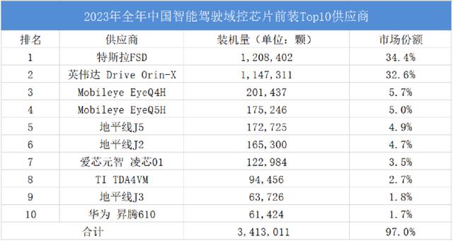 但这是NOA的占比,在智驾域控芯片整体排名中,地平线还处于追赶位置。