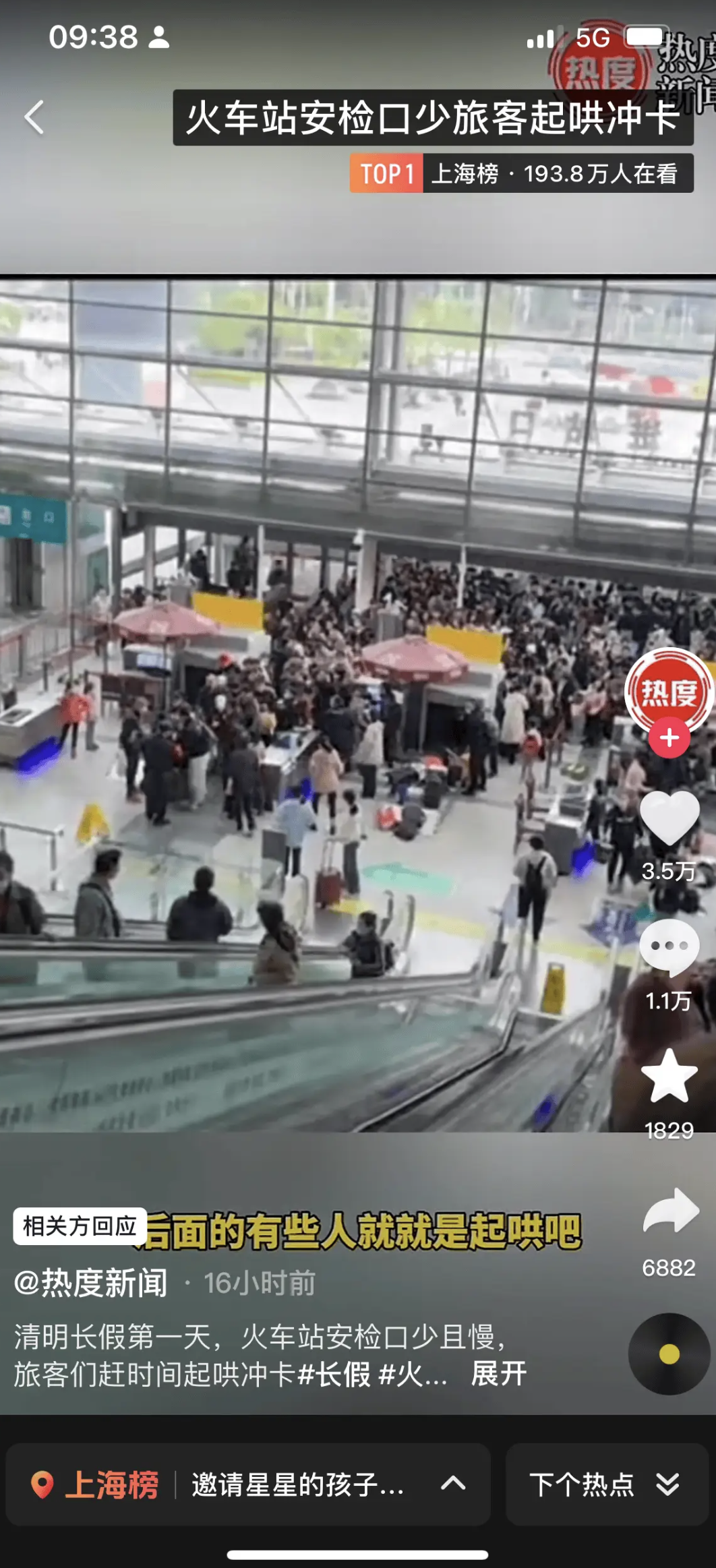 4月4日,清明小长假第一天,网传上海火车站安检口有部分旅客冲卡,此事引起了广泛关注。
