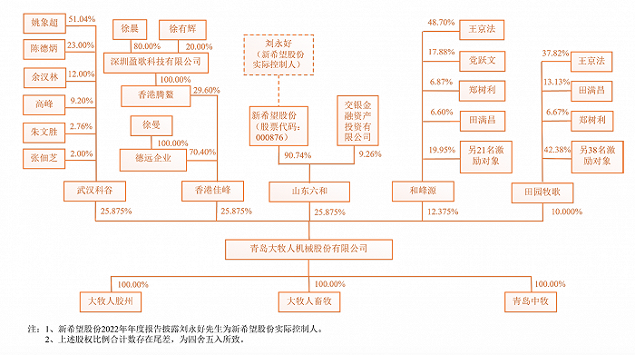 这其中,山东六和是大牧人的发起人之一,成立于1995年7月10日,由新希望(000876.SZ)持股90.74%,最终控制人刘永好,可以说新希望对大牧人的参股,实则对上游的布局。根据披露,在2008年,山东六和获得股权转让,由此入驻,山东六和出资额200万元。