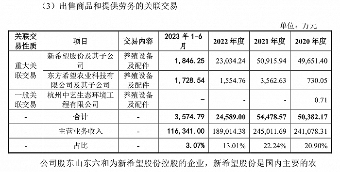 有数据显示,2020年至2022年大牧人和新希望方面的重大关联交易金额达到4.9亿元、5.09亿元、2.3亿元。不过该数字在2023年上半年降为1846.25万元。
