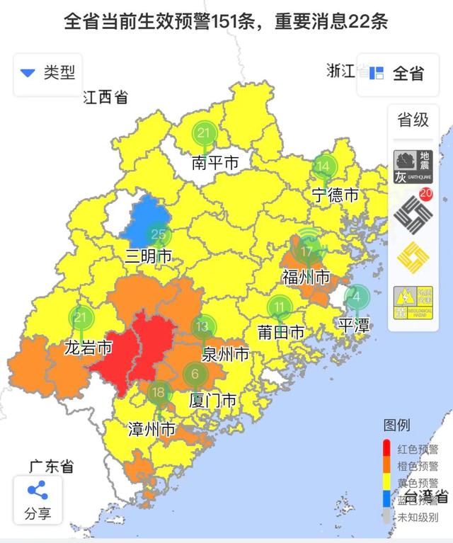 福建省气象台将“暴雨预警”提升为Ⅲ级