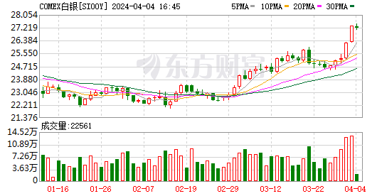 另外,COMEX白银也加速上涨。