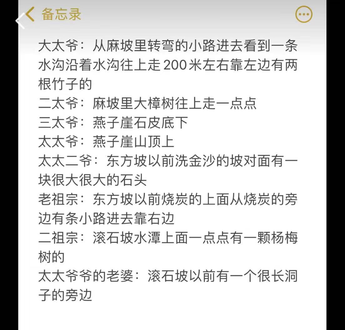 还有网友对太公太婆的地理位置特征进行了详细记录,详细到周围长了什么树、有什么石头、该往左还是往右都清清楚楚。每年祭祖要是没有你,可能全族都得去祠堂罚跪。
