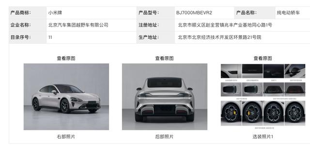 去年11月15日,在工信部发布的《道路机动车辆生产企业及产品公告》第377批中,出现了小米牌纯电动轿车的身影。工信部信息显示,小米汽车本次的申报企业为北京汽车集团越野车有限公司(以下简称北京越野),产品车尾标也有“北京小米”的字样。不过,申报资料显示生产地址为“北京市北京经济技术开发区环景路21号院”,正是目前小米汽车生产基地地址。