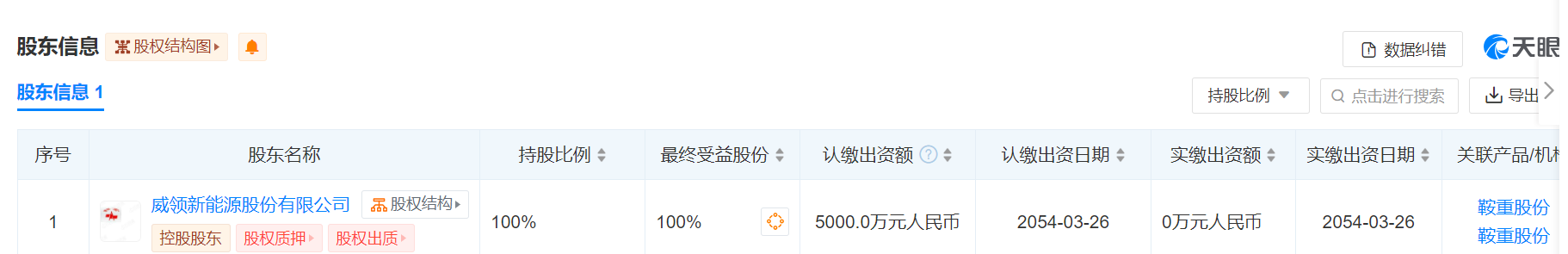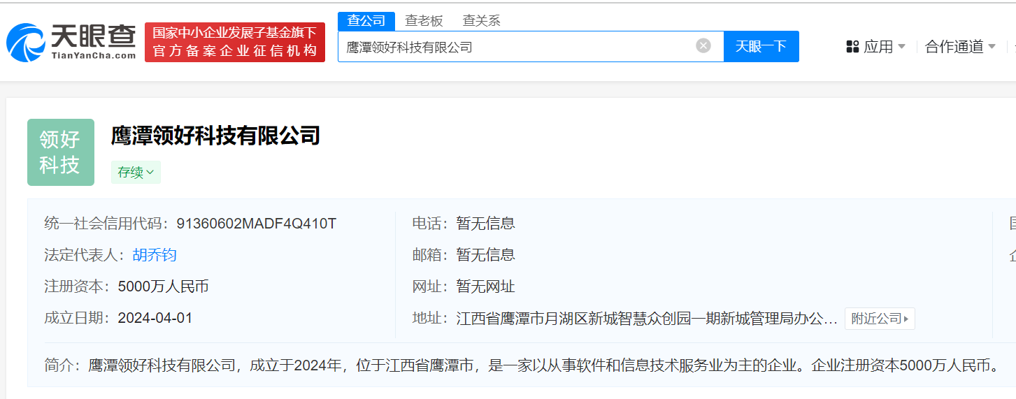 天眼查App显示,近日,鹰潭领好科技有限公司成立,法定代表人为胡乔钧,注册资本5000万人民币,经营范围含软件开发,科技中介服务,有色金属合金销售,常用有色金属冶炼,基础化学原料制造,电池制造,工程和技术研究和试验发展等。股东信息显示,该公司由威领股份(002667)全资控股。