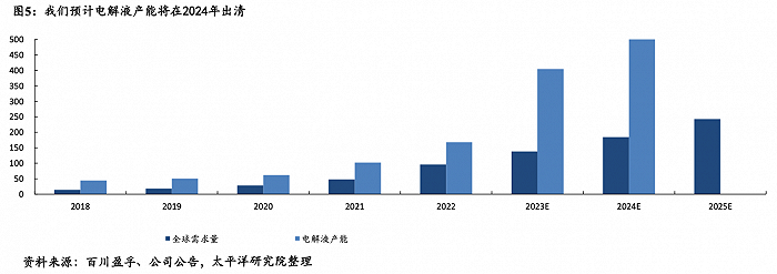 太平洋证券研究院认为,2024年全球电动车销量增速将放缓,电解液产能将在2024年出清,电解液价格及盈利也将在2024年下降至底部。