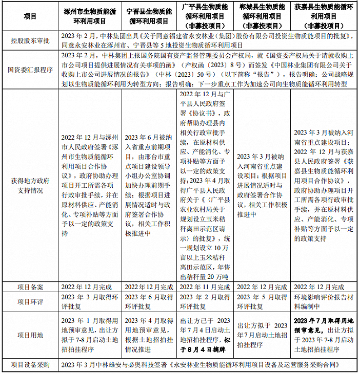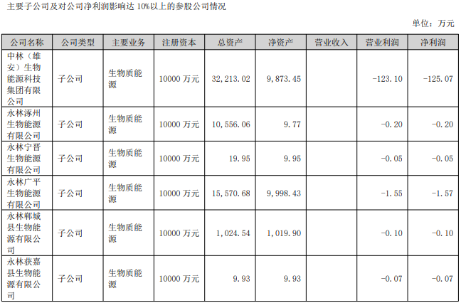 2022年11月16日,永安林业公布,中林雄安公司作为投资平台,拟在河北省涿州市、宁晋县、广平县,河南省郸城县、获嘉县设立5个生物质能循环利用项目实施公司,注册资本金均为1亿元整,根据项目实施进度和资金需求分期注入。
