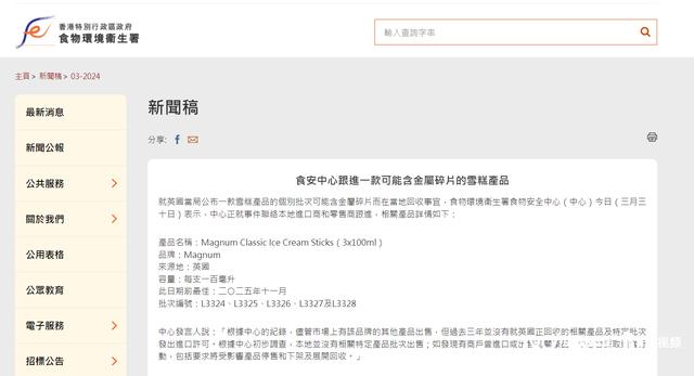 南都湾财社记者注意到,3月30日,澳门特区政府发布了相关公告,要求业界如持有相关产品应立即停止供应及出售。同时,澳门特区政府称已派人员到市面巡查,并呼吁市民停止食用有关产品。澳门特区政府提到涉事批次的梦龙冰淇淋来源地为英国。