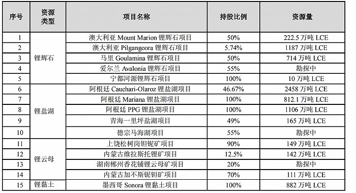 赣锋锂业在全球范围内直接或间接拥有权益的上游锂资源情况