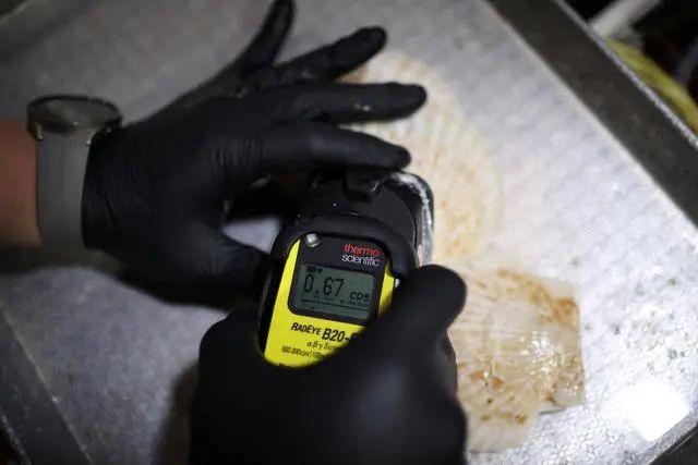 韩国一官员在对从日本进口的扇贝进行放射性测量。