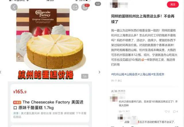 2023年5月29日,话题“山姆超市同款蛋糕杭州卖165上海卖95”也冲上过热搜。