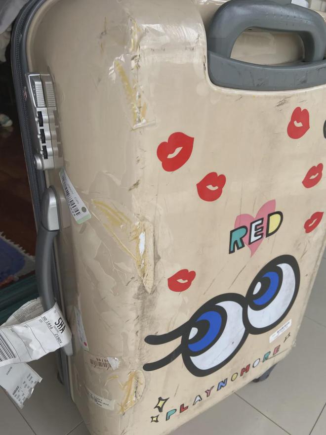 然而,在领取托运行李时,郑女士发现自己的行李箱受损严重。