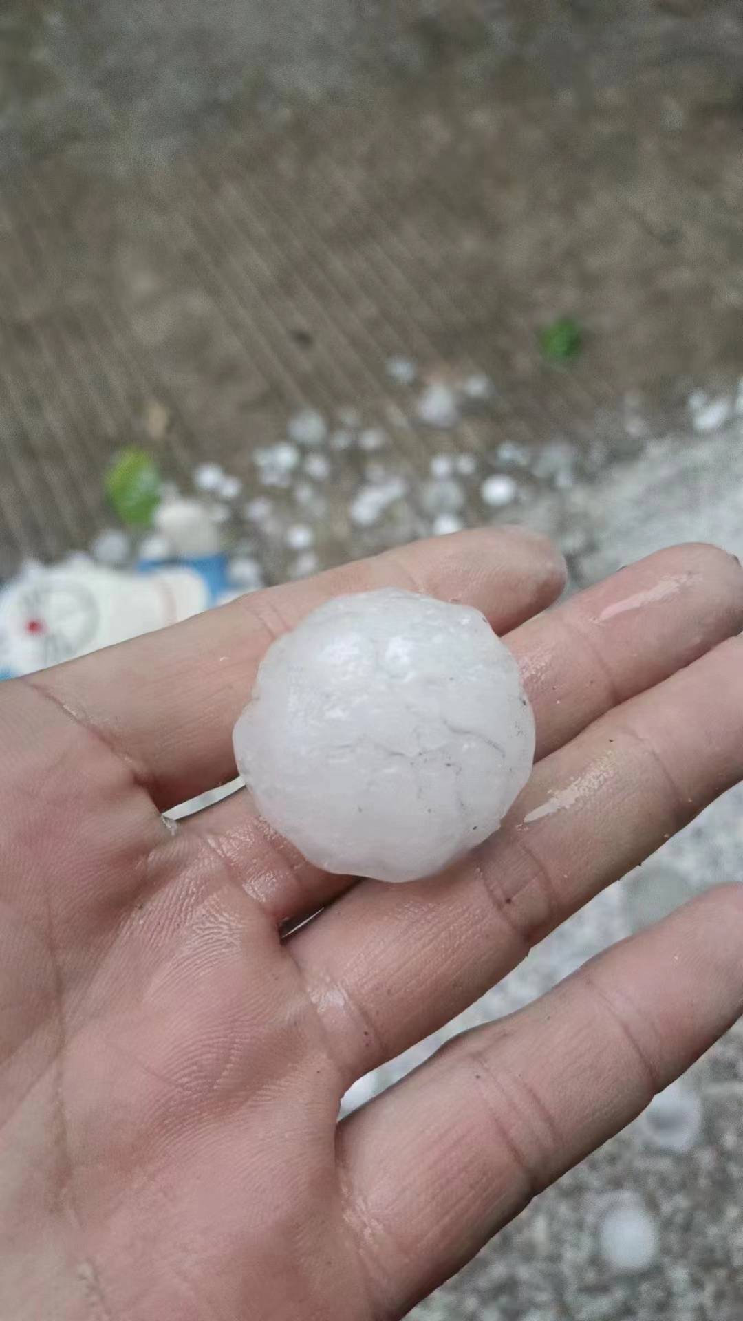 他表示,从朋友圈里发布的情况来看,苏溪和荷叶塘下得比较大,冰雹约有乒乓球大。“我害怕把车砸坏,赶紧出来看看,发现没事。”