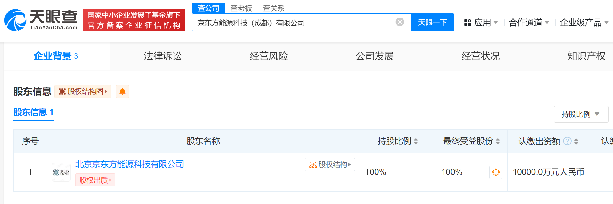 天眼查App显示,近日,京东方能源科技(成都)有限公司、京东方能源科技(绵阳)有限公司成立,法定代表人均为马亮,注册资本均为1亿人民币,经营范围包含风力发电技术服务、光伏设备及元器件销售、节能管理服务、太阳能发电技术服务、物联网技术研发、储能技术服务等。股东信息显示,两公司均由京东方A(000725)旗下北京京东方能源科技有限公司全资持股。