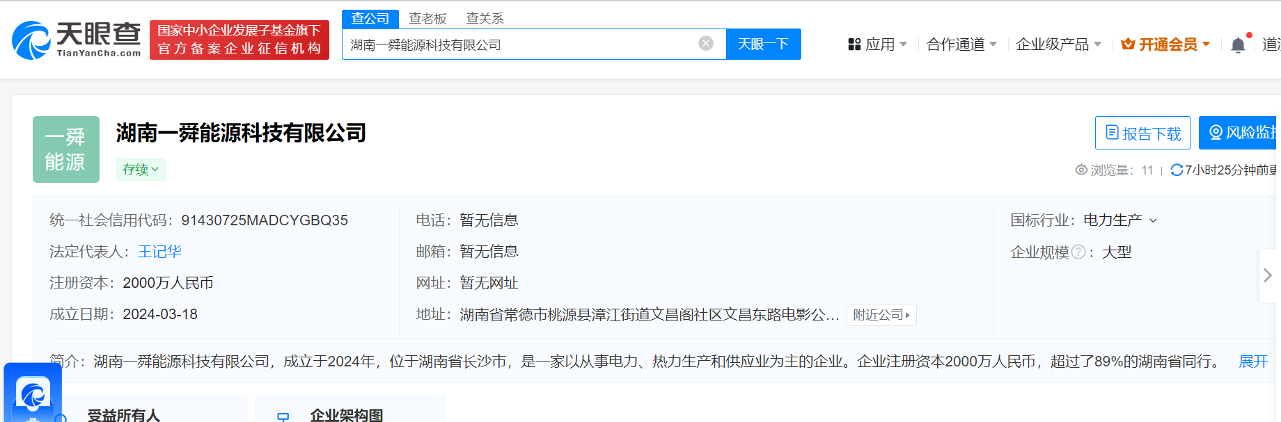 天眼查App显示,近日,湖南一舜能源科技有限公司成立,法定代表人为王记华,注册资本2000万人民币,经营范围含太阳能发电技术服务、光伏设备及元器件制造、电动汽车充电基础设施运营、充电桩销售等。股权全景穿透图显示,该公司由湘佳股份(002982)旗下湖南湘佳沐洲能源科技有限公司全资持股。