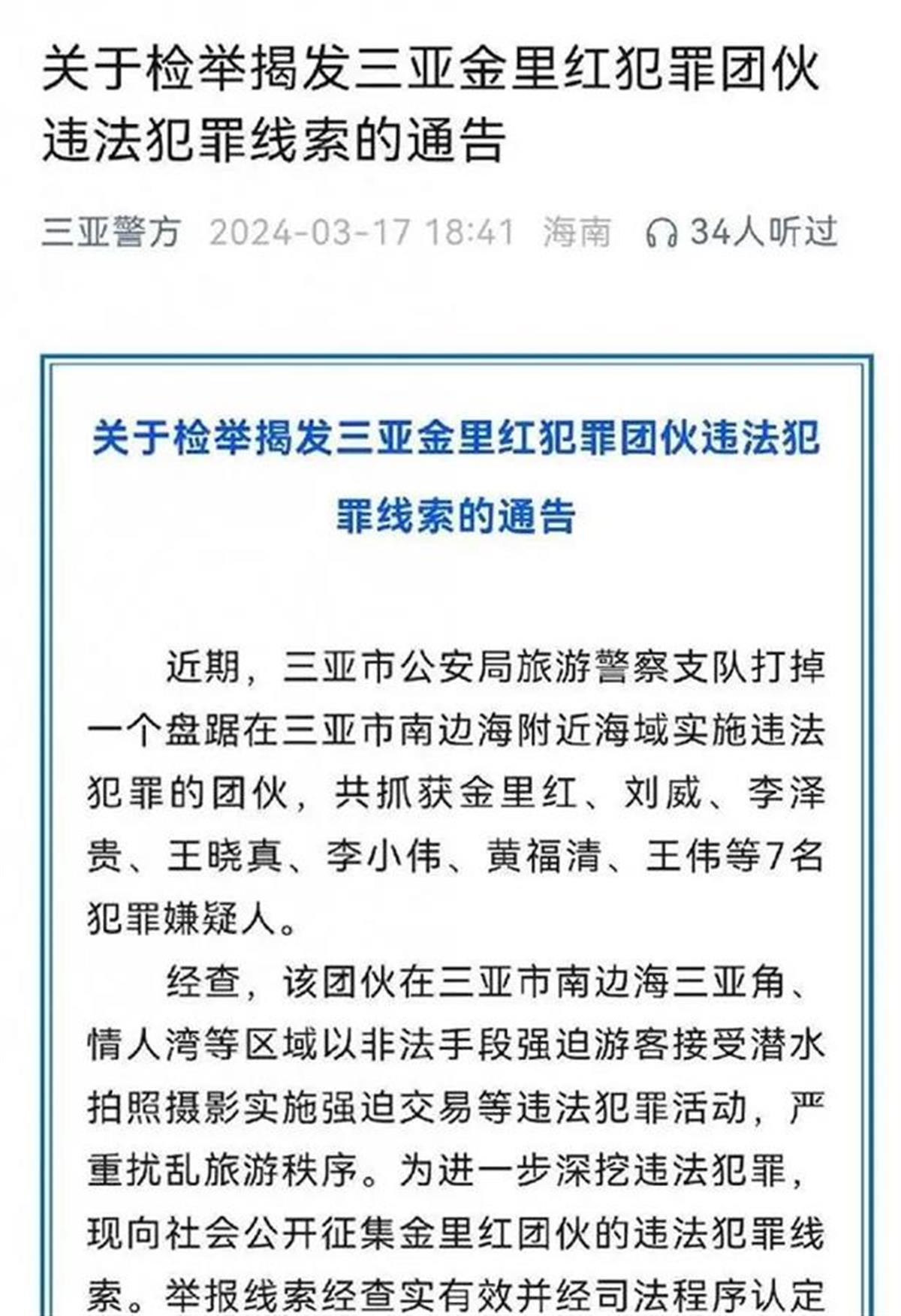 相关事件的曝光,是因为三亚市公安局的一则通告。该通告称,有违法犯罪团伙在三亚市南边海三亚角、情人湾等区域,以非法手段强迫游客接受潜水拍照摄影实施强迫交易等违法犯罪活动,现向社会公开征集线索。于是,不少游客公开表示,在三亚有过类似遭遇。