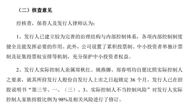 对于这家的家族企业的公司治理问题,保荐机构中信证券的回答是:发行人已建立较为完善的治理结构与内部控制体系,各项内部控制制度健全且能发挥必要的作用。