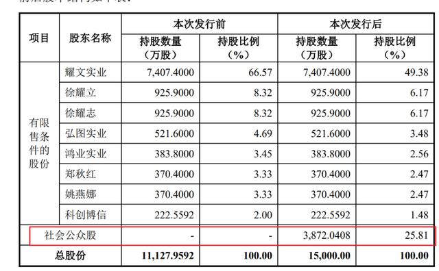 发行公众股后,整个家族占公司股份为72.7%。根据本次募资5.4075亿计算,IPO发行后徐家的市值将达到15.65亿。