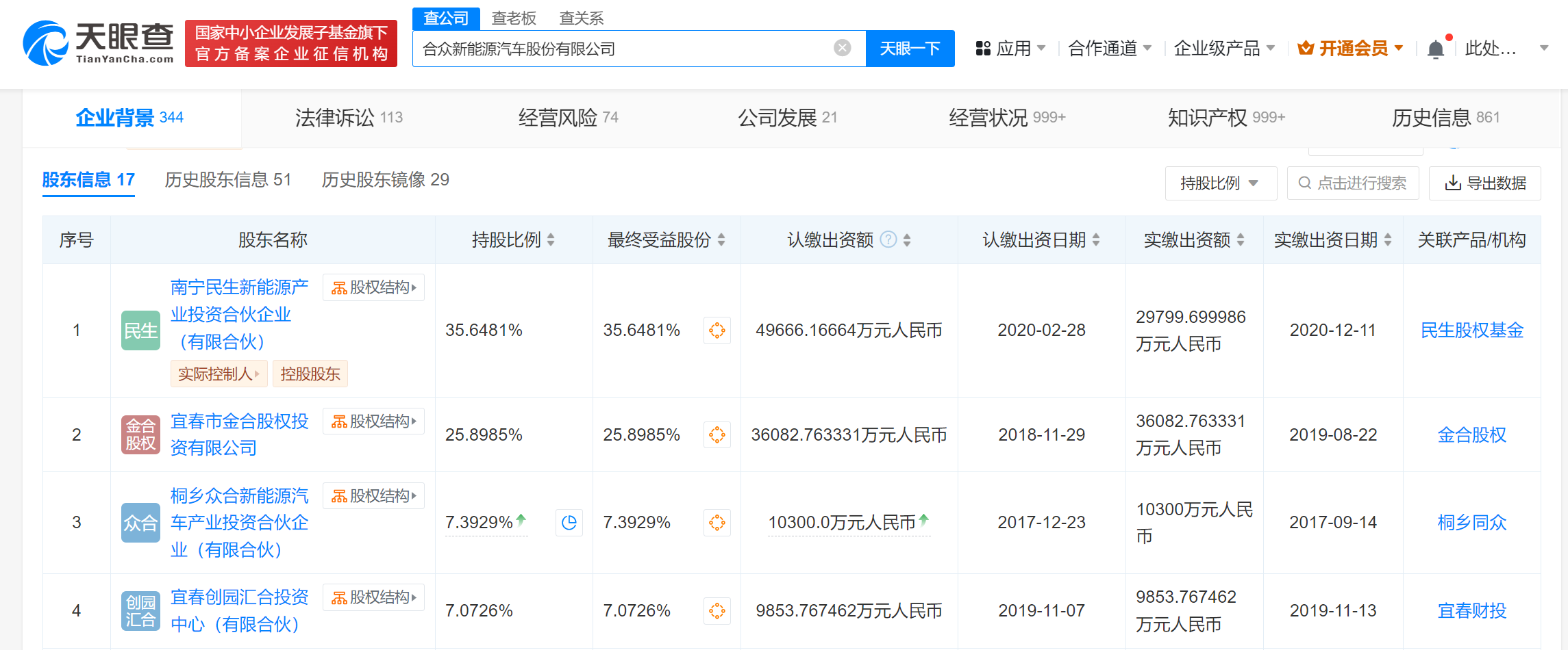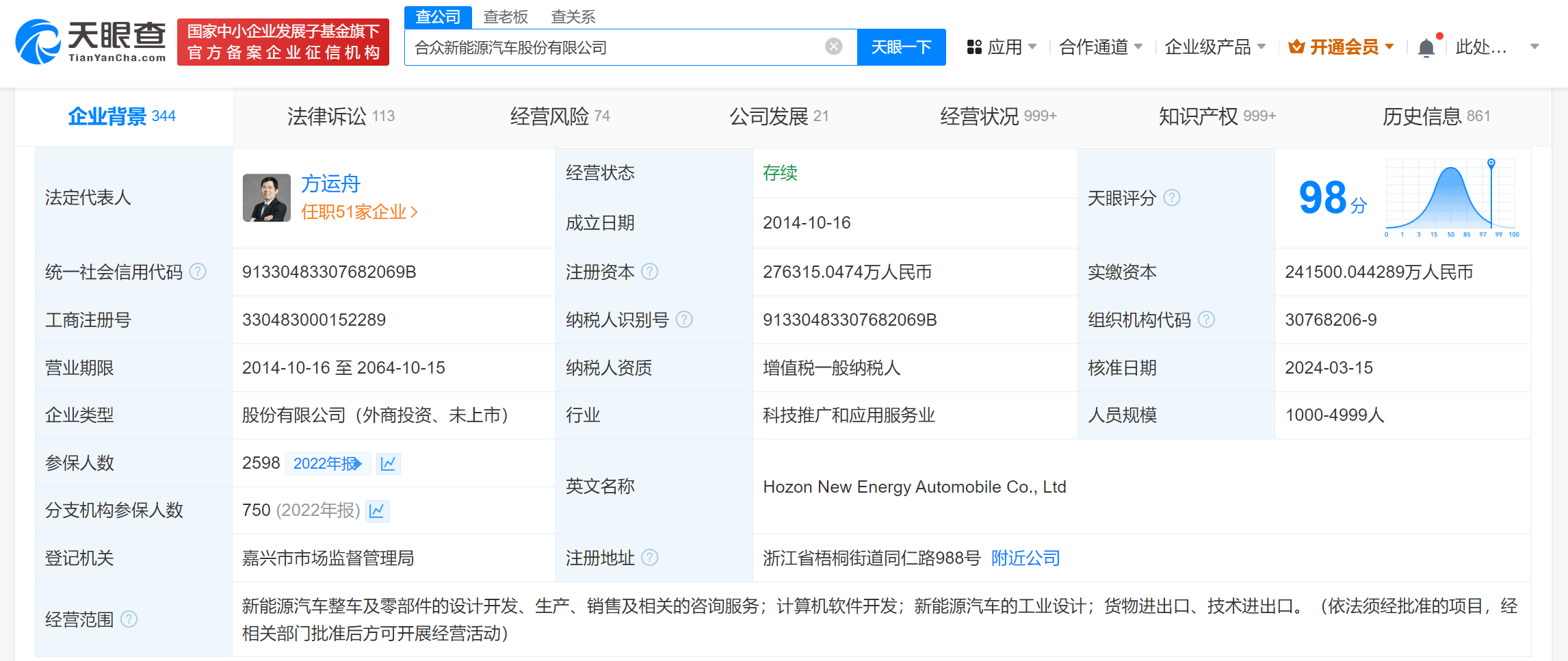 合众新能源汽车股份有限公司成立于2014年10月,法定代表人为方运舟。股东信息显示,该公司由南宁民生新能源产业投资合伙企业(有限合伙)、宜春市金合股权投资有限公司、桐乡众合新能源汽车产业投资合伙企业(有限合伙)等共同持股。