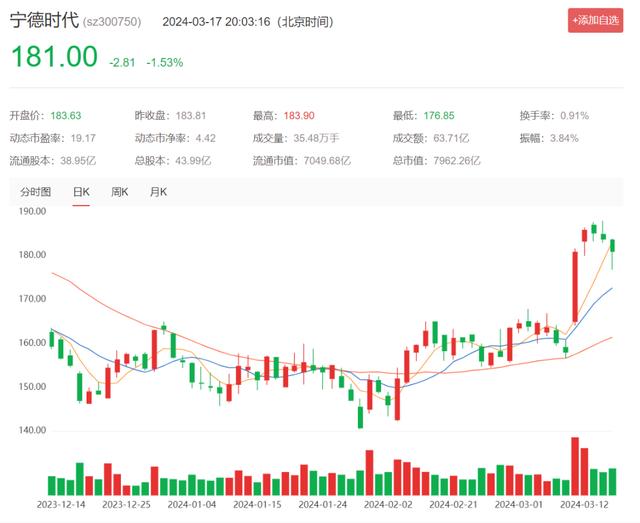3月17日,宁德时代发布最新投资者关系活动记录,3月15日,公司召开电话会议,董事长曾毓群、董事会秘书兼副总经理蒋理、财务总监郑舒、董事会办公室主任林美娜等高管参会,与会投资者约2400余人。这也是今年以来A股披露的最大规模投资者调研活动。