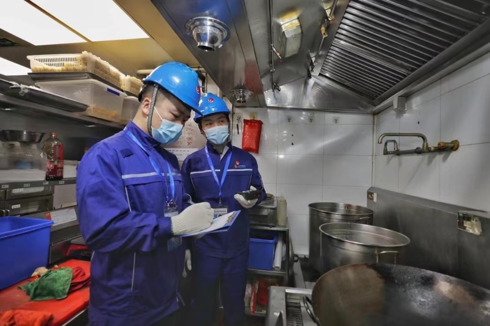 北京燃气集团的工作人员还走进商业综合体等人员密集场所,对非居民用户安全用气情况进行全面检查,重点检查餐饮场所燃气管线、阀门等燃气设施。同时,对使用燃气的餐饮场所进行安全宣传和用气指导,普及燃气安全知识,引导和督促餐饮行业人员提高安全防范意识和应急处置能力。