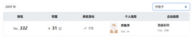乔鲁予是老牌亿万富豪,2009年,乔鲁予就已以31亿身家登上胡润百富榜,此后直到2022年,其一直在榜。其中,2015年其个人财富一度达到86亿元。