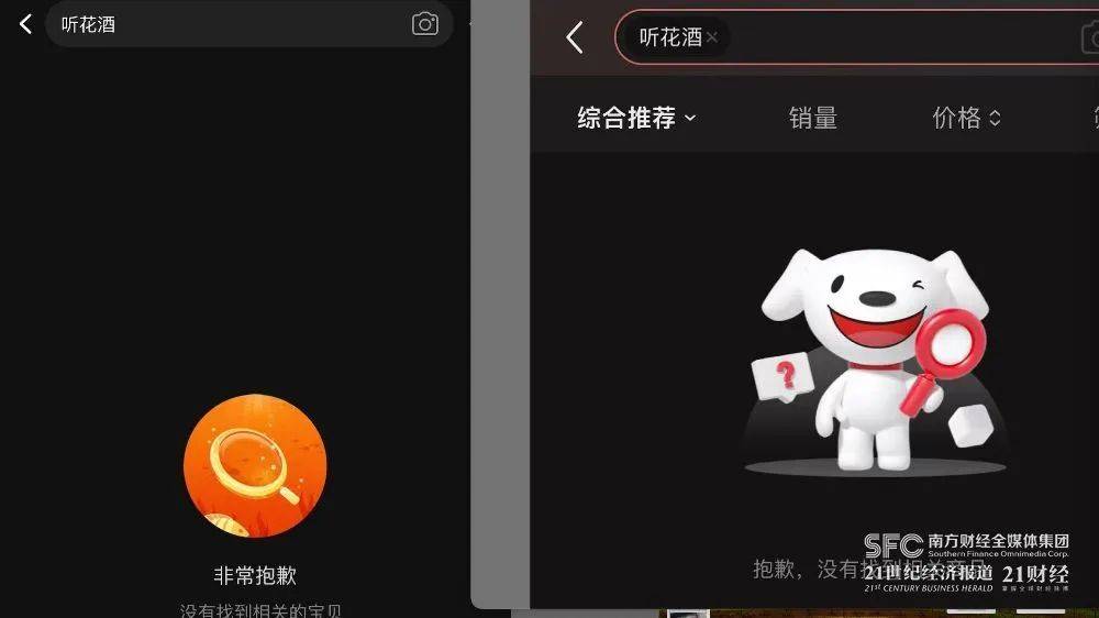 听花酒在京东、天猫两大平台均开设了旗舰店,不过21世纪经济报道记者15日晚在两大平台查询发现,已经无法搜到相关产品和店铺。此外在首都机场,也有乘客反映15日晚听花酒的广告被连夜下架。