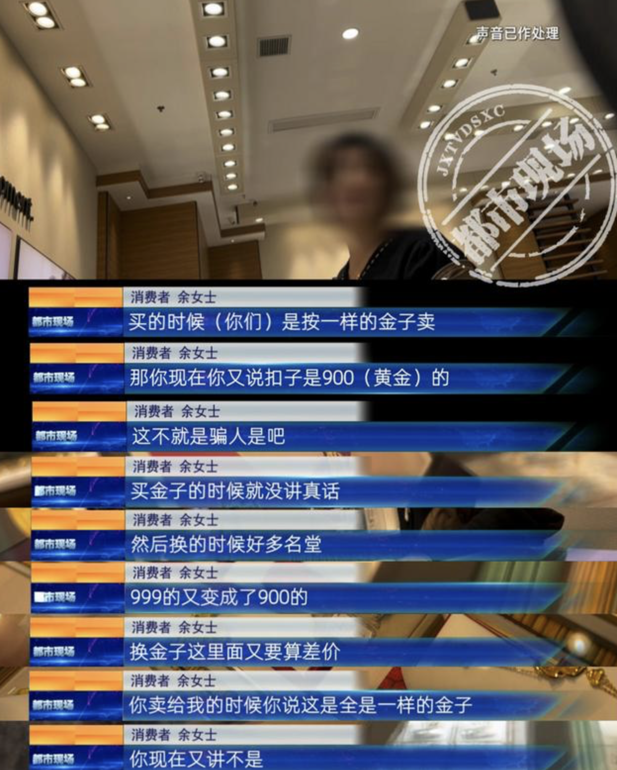 原来,消费者余女士此前在谢瑞麟买到的这条项链扣头并不是足金的,无法按足金价格回收,听到这里,消费者十分气愤,直言自己被“谢瑞麟”欺骗了。