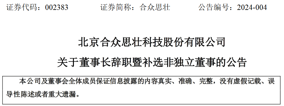 合众思壮(002383)于3月13日发布公告称,北京合众思壮科技股份有限公司(以下简称“公司”)董事会近日收到张振伟先生递交的书面辞职报告,张振伟先生因工作调整申请辞去董事长、董事以及提名委员会成员、薪酬与考核委员会成员、战略委员会成员的任职。根据《中华人民共和国公司法》、《北京合众思壮科技股份有限公司章程》(以下简称“《公司章程》”)等相关规定,张振伟先生的辞职不会导致公司董事会成员人数低于法定最低人数,不会影响公司生产经营和正常运作,其辞职报告自送达公司董事会之日起生效。张振伟先生未持有公司股票,无须遵守相关减持承诺。