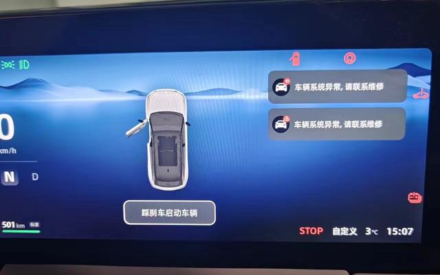 2月22日,车辆显示屏上出现“车辆系统异常,请联系维修”的提示信息。图/车主供图