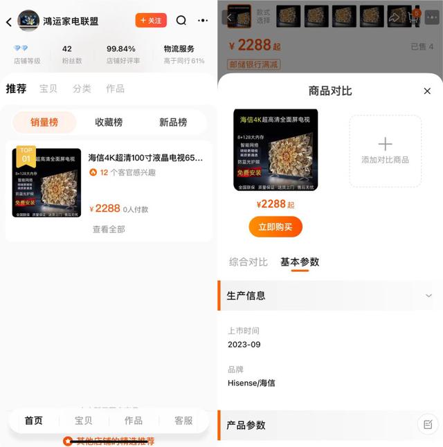 店铺商品均使用了海信的宣传图和海信信息。图片来源/受访者供图