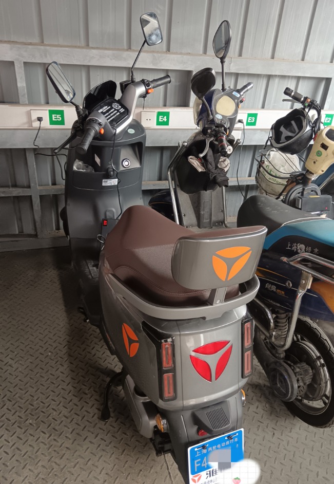 2月27日上午,记者骑着车尾螺帽外凸、车身左右带有十多个明显螺孔的“冠能探索E10 lite-D”,在双流路98号验车通过,并当场取得了一块“F4”开头的蓝色上海两轮电动自行车牌。