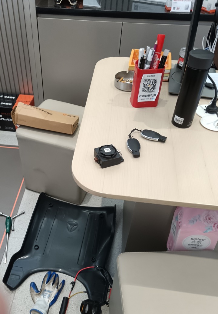 在重新封装好盖板后,对方又将车尾处电线接头塞好,以防验车露出破绽。为进一步检验改装效果,对方将车推到门外,在人行道上骑了一圈后返回店内,表情得意。