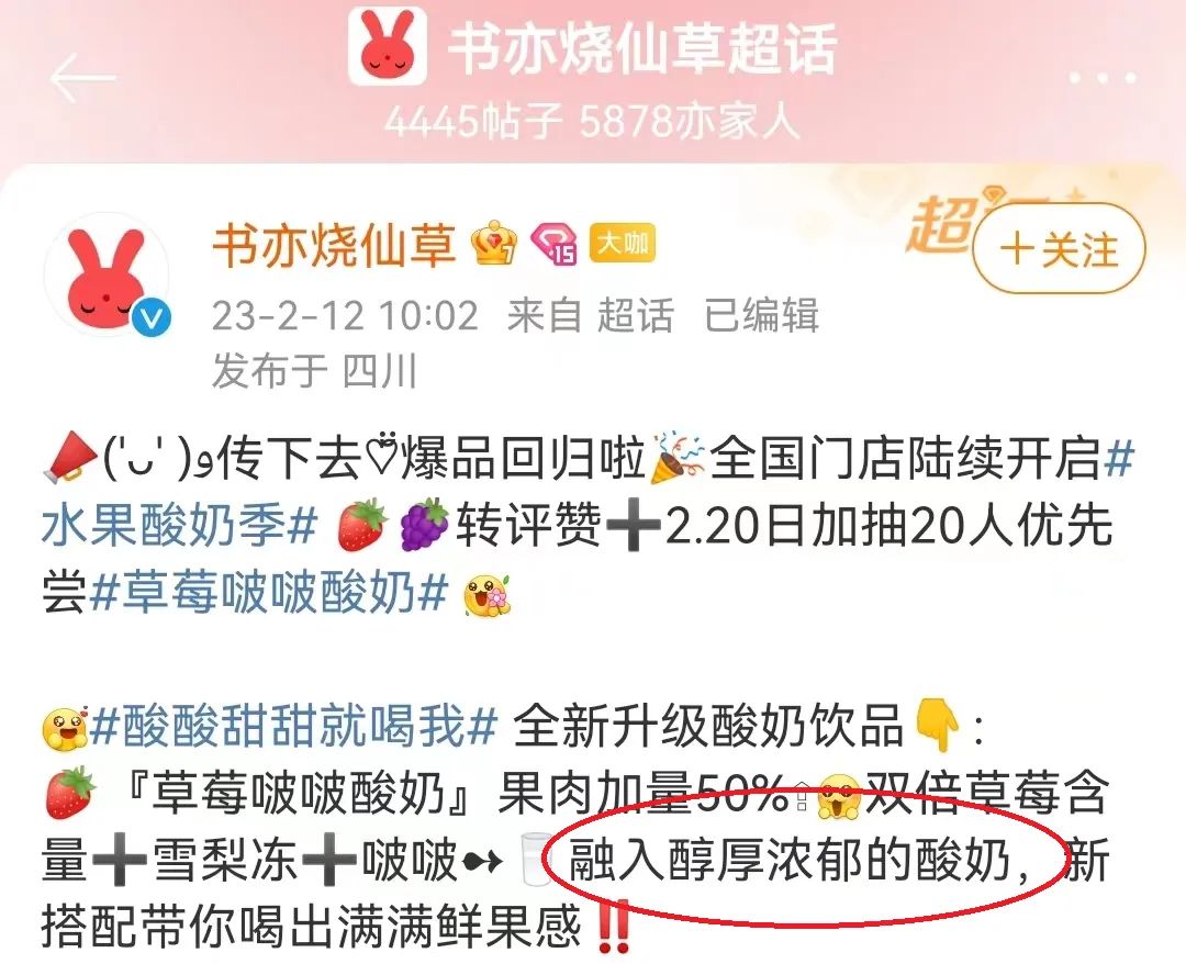 近期,上海市消保委对市场上多家知名品牌的现场制售酸奶进行了测试,结果却发现,一些品牌的配料存在不小的谜团。3月8日,上海市消保委通过微信公众号发文,对书亦烧仙草的“草莓啵啵酸奶”提出了质疑。测试结果显示,这款被宣传配料为“水果+酸奶”的百万级网红饮品,其乳糖含量异常低,蛋白质和脂肪含量也完全不符合酸奶的标准成分比例。此外,这款600毫升的饮品中含有高达35.3克的蔗糖,相当于约7块方糖的量。