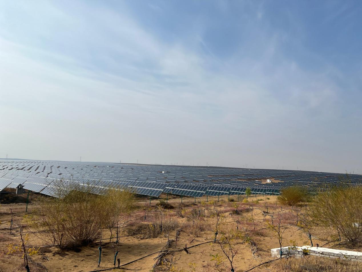 库布其沙漠的腹地,一望无际的光伏板。人民网 欧阳易佳摄