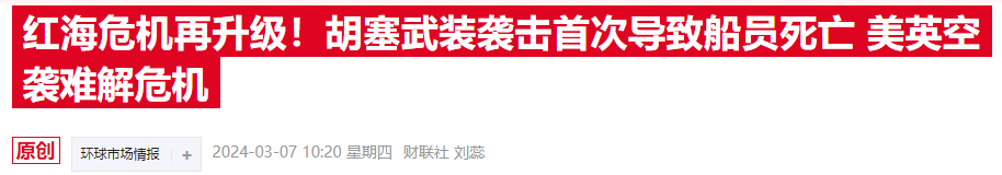 2023年10月,新一轮的巴以冲突爆发,胡塞武装使用无人机和导弹在红海水域多次袭击关联以色列、美国和英国的船只,以示对巴勒斯坦的支持。去年12月,美国宣布组建多国海上联军予以威慑。