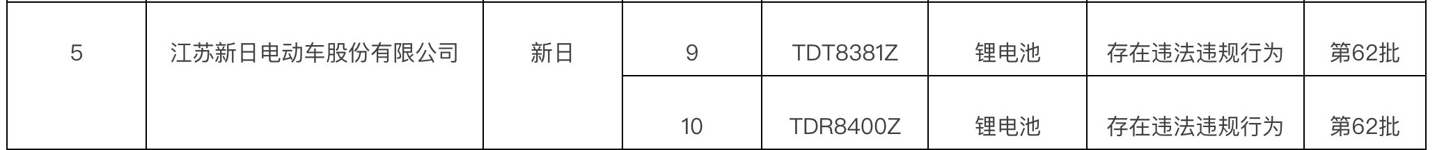 其中,江苏新日电动车股份有限公司TDT8381Z、TDR8400Z两型号产品存在违法违规行为,被通报不得在北京市销售和登记上牌。