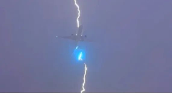 从视频中可以看出,闪电击中了机身,迸发出蓝色火花,现场也听到现场目击的民众发出的惊叹声。但是飞机似乎并没有受到影响,继续稳定爬升,当天也没有飞机返航的消息。