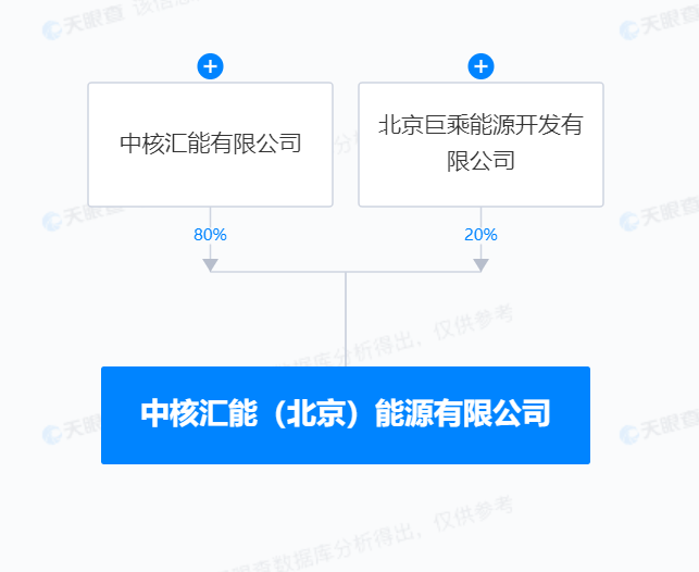 天眼查显示,近日,中核汇能(北京)能源有限公司成立,法定代表人为段继兵,注册资本1000万元,经营范围包含:太阳能发电技术服务;风力发电技术服务;储能技术服务;电动汽车充电基础设施运营等。股权穿透显示,该公司由中国核电旗下中核汇能有限公司、北京巨乘能源开发有限公司共同持股。