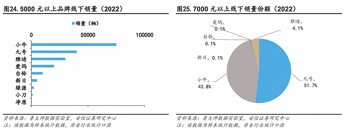 不过,前三名主攻中低价格段,零售价集中在3000元以下。2022年5000元乃至7000元以上的线下市场,小牛销量位列第二。
